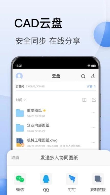 4.离线缓存机制:智能预加载图纸数据,确保在地铁等弱网环境仍可流畅操作,缓存空间占用低于同类产品30%。