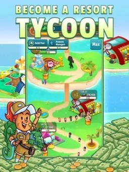 蓝天下载网为您免费提供IdleVacationTycoon下载,IdleVacationTycoon游戏官方版、IdleVacationTycoon安卓版下载等信息都能在这里轻松获取。这是一款充满趣味的休闲模拟经营游戏,玩家可以在游戏中经营属于自己的度假村。游戏画面采用可爱的卡通风格,色彩明亮,能带来愉悦的视觉体验。玩家可以发挥创意,设计独具特色的度假村,规划建设餐厅、酒店、水上乐园等设施,通过扩建和升级设施吸引更多游客,提升度假村收入。