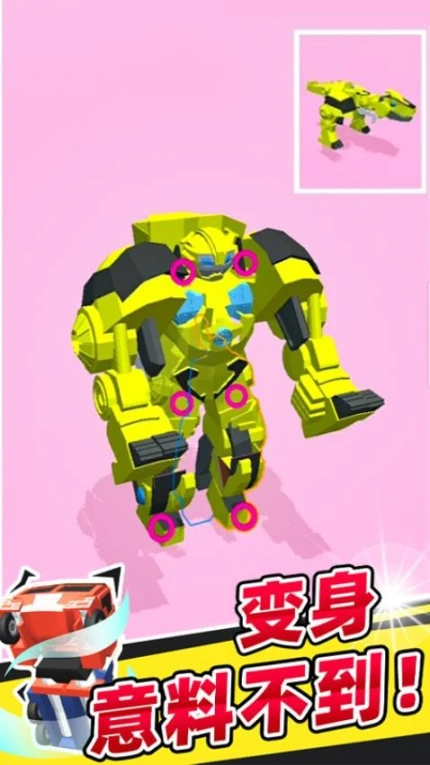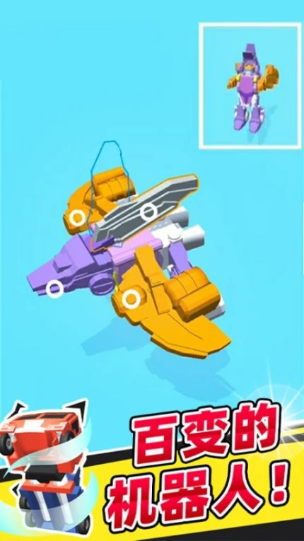 机器人大变身是一款充满创意和趣味的休闲模拟游戏。玩家在游戏里将开启一段独特的机器人世界之旅。立体卡通的画面设计,带来绝佳视觉体验,让玩家轻松沉浸其中收集心仪的机器人。游戏提供拼接固定点设计,玩家能按步骤完成机器人变形。解锁并完成组建可获奖励与高级样式,达成成就还能发现更多精彩环节。带上机器人在城市街道自由穿梭,感受不一样的冒险。
