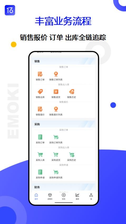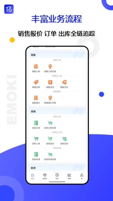 1、进销存管理:支持多行业定制化模板,实时同步销售与库存数据。