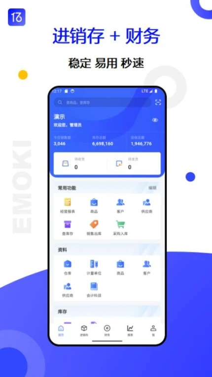 蓝天下载站为您免费提供亿贸来官网版下载。这款中小企业进销存管理软件支持多行业应用,用户可通过在线操作实现销售开单、库存盘点及出入库记录功能。平台提供销售报价、订单追踪、商品批次管理等服务,同时支持店铺记账与月结对账,帮助用户高效掌握经营动态。