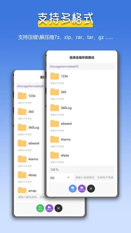 万能解压缩zip免费版是一款集文件压缩与播放功能于一体的实用系统工具。它主要用于手机文件的管理,通过强大的压缩功能,用户能够将大量文件进行压缩处理,从而获得更小体积的文件,有效释放手机内存空间。在压缩过程中,用户可以根据不同的使用场景和设备要求,灵活选择合适的压缩文件格式,使文件在解压和传输时更加方便。此外,该应用还提供了文件分类、标记功能,方便用户对文件进行精准管理和快速查找。同时,它还具备视频和音频播放功能,支持多种格式的音视频文件播放,为用户提供了更加全面的文件管理和娱乐体验。