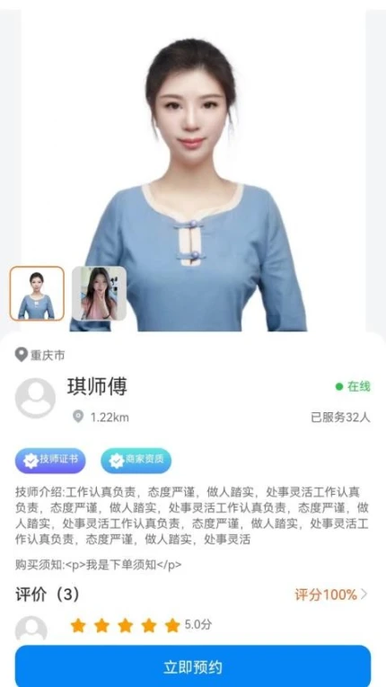 拥有详细的技师介绍内容,方便用户了解技师服务项目和专业能力,便捷选择技师。