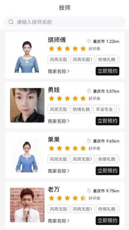 多样的服务项目和详细的技师信息,使用户有更多选择,能找到适合自己的服务。