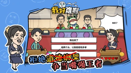 蓝天下载网为您免费提供《我好难啊》下载,这是一款集解谜、休闲益智于一体的游戏。游戏结合当下热门影视剧与网络热梗,打造多种益智关卡,例如狼人杀、推理等模式,给玩家带来不一样的体验。玩家能在这里获取无尽乐趣,游戏中还融入了《狂飙》里的角色,如李想、疯驼子、许江等,通过人物关系推理线索,解决关卡。在闯关时,玩家需结合智慧分析,不放过任何元素。快来下载这款魔性的解谜游戏,开启你的闯关之旅吧!