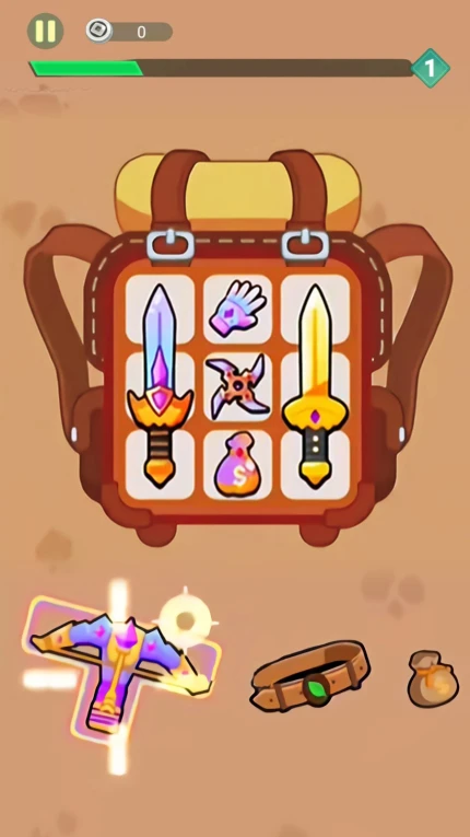 我是背包侠是一款别具特色的休闲闯关游戏。游戏以合成为核心玩法,让玩家在轻松的氛围中体验战斗的乐趣。玩家在游戏里可通过合成获取各种武器,武器类型丰富多样,能满足不同战斗需求。关卡中有着不同的目标要求,玩家需要尽快获取机会来解决问题。背包容量会随着游戏进程逐步增加,玩家能看到背包内固定位置,结合武器形状选择放置。游戏玩法类似拼图,需将物品全部放置在背包中,合理搭配武器后开启对战模式。