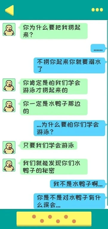 NPC对话融入幽默元素,通过碎片化剧情拼凑出旱鸭子跳水的神秘原因,增强叙事沉浸感。