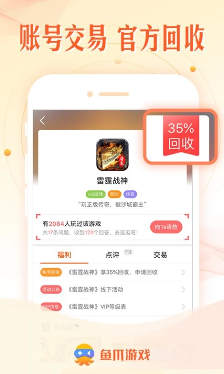 鱼爪手游最新版是一款很实用的手机端游戏交易软件,体积小巧,界面简洁清爽,使用起来非常流畅。在这个软件当中,用户可以随时进行游戏道具的购买、点券的充值,正规渠道,价格比官方的要低得多,更加省钱。此外,用户还可以在这个app里面进行游戏账号交易,不想玩游戏了,不要浪费,直接在这里进行游戏账号交易,真人交易,安全放心。