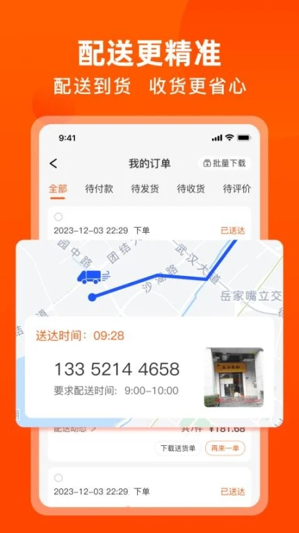 2.配送高效:提交采购订单后,食材能极速配送上门,提高配送效率,节约成本。