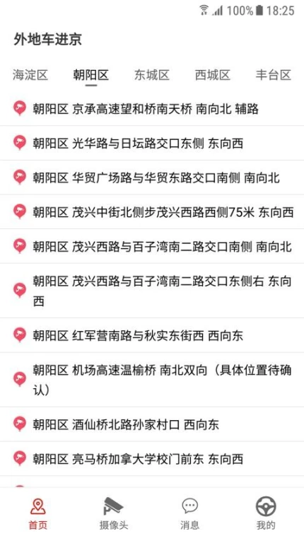 内置电子地图标注系统,支持按朝阳、海淀等16个行政区域分类检索,提供摄像头密集路段预警提示。